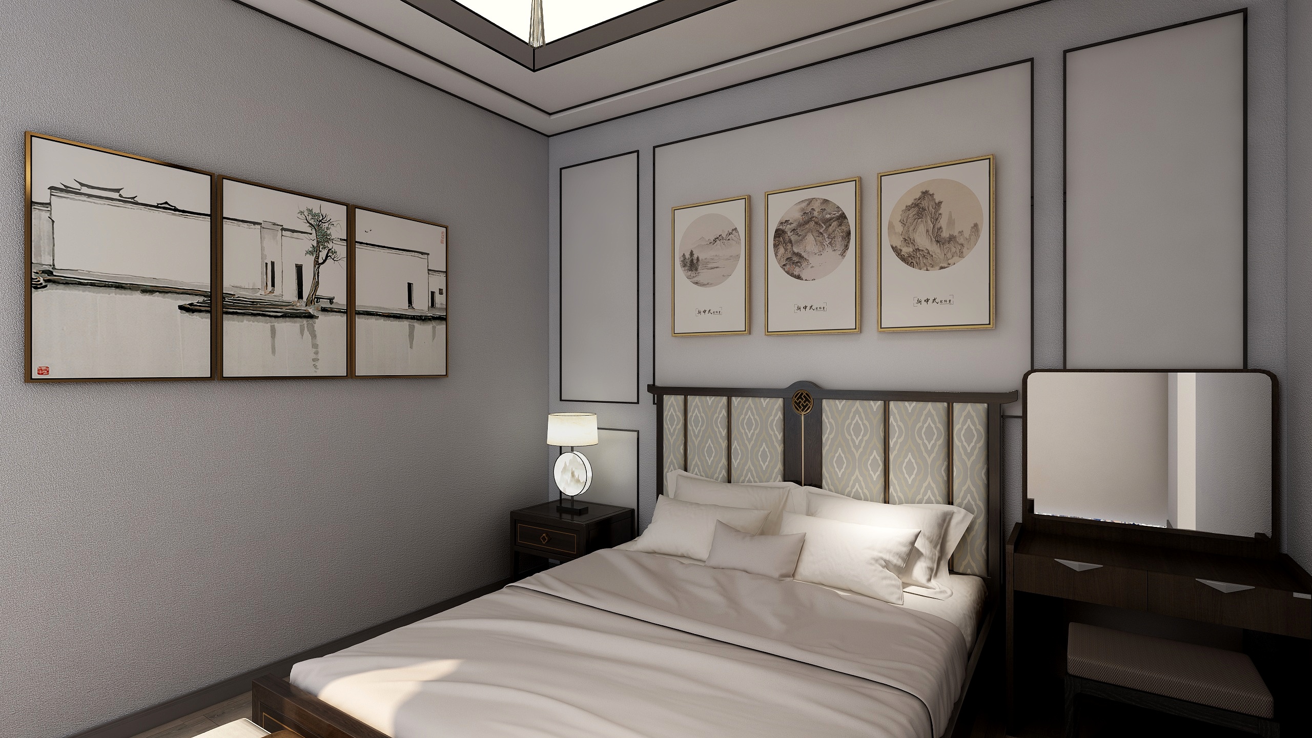 整體環境舒適而干凈,簡潔大氣且雅致情調,設計師優化了布局,采用水墨畫作為點綴,使臥室透露出詩情畫意,突出文化的點綴。以干凈、簡單為主基調,更增添了舒適感。如果不喜歡太過于素雅,可以換個色彩鮮艷的靠枕,簡潔且不單調。