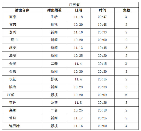 電視廣告分為兩期,目前第一期播放時間于2015年10月起,陸續在江蘇、河北、湖南、山東、湖北、浙江、四川、云南、廣西、山西、貴州等十個省多家衛視黃金時段盛大播出,插播于《信者無敵》電視連續劇中,敬請關注!!!