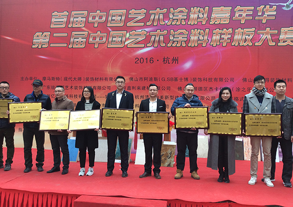 藝術涂料嘉年華會上,蒙太奇可謂雙喜臨門,不僅成功競選中國藝術涂料涂裝分會理事單位,還獲得品牌貢獻獎。中國涂料協會領導、地區協會領導、分會理事長單位代表對獲獎的企業進行的頒獎。